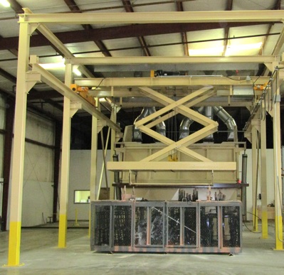 The next cycle can begin immediately by immersing another basket in the fluidized bed with the hoisting system.